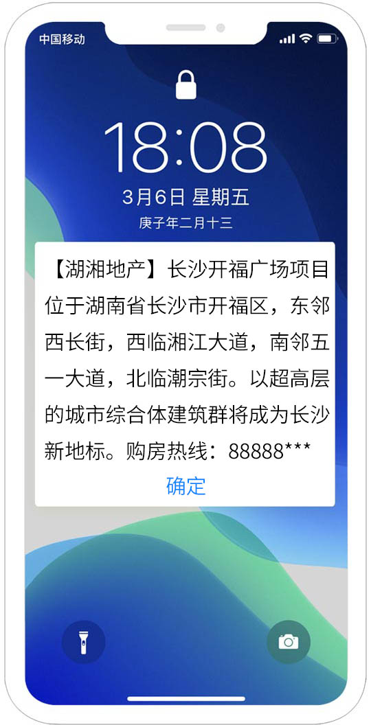 閃信群發(fā),高到達(dá)率,高閱讀率,低攔截率,閃信彈屏、直接閱讀,短信內(nèi)容不留存手機(jī),精準(zhǔn)推送,無(wú)攔截?zé)o打擾、閱后即焚。